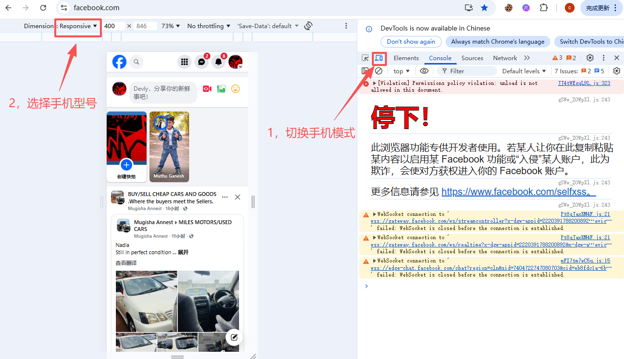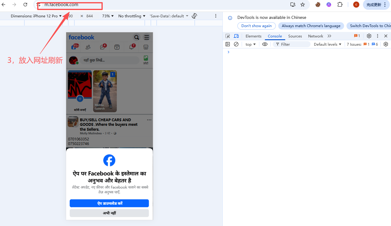 电脑端如何使用 m.facebook.com 登录以避免人机验证(市面上说是免ws验证的方案之一) 1. 打开浏览器按 f122. ctrl + shit + M3. 选择 iphone 12 或 14 界面..4. 将链接更改为 m.facebook.com